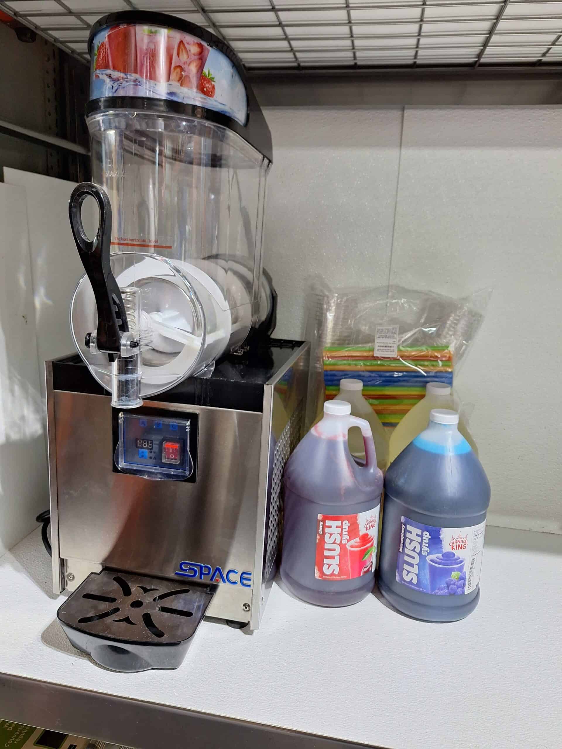 Machine à slush (inclus, verres, pailles, couvercles) | 65$ par jour incluant 10 portions, 10$ pour 10 portions supplémentaires |